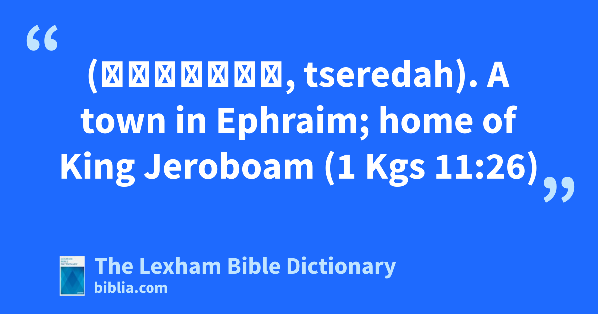 Zeredah (צְרֵדָה, tseredah). A town in Ephraim; home of King Jeroboam (1 Kgs 11:26)