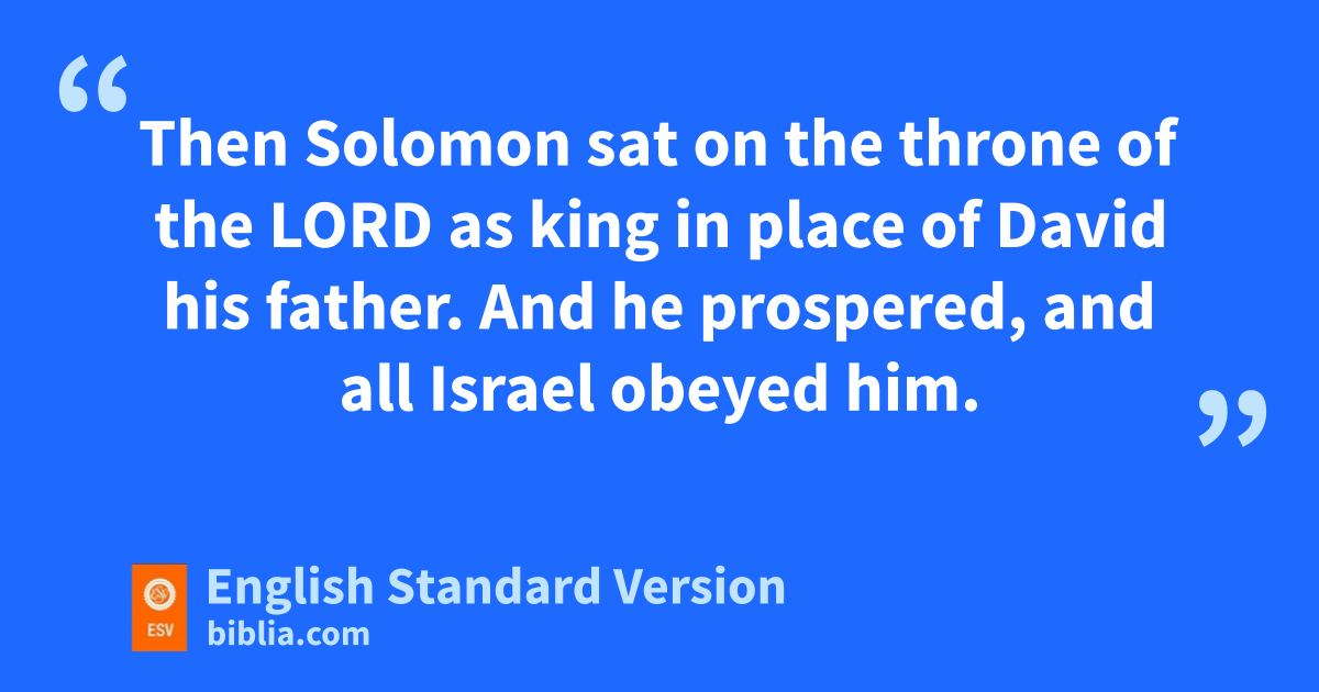 23 qThen Solomon sat on the rthrone of the Lord as king in place of David his father. And he prospered, and all Israel obeyed him. 24 All the leaders and the mighty men, and also all the sons of King David, pledged their allegiance to King Solomon. 25 And the Lord made Solomon very sgreat in the sight of all Israel and tbestowed on him such royal majesty as had not been on any king before him in Israel.