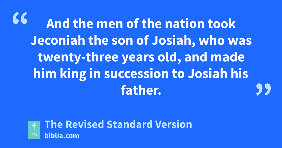 34 And the men of the nation took Jeconiah the son of Josiah, who was twenty-three years old, and made him king in succession to Josiah his father. 35 And he reigned three months in Judah and Jerusalem. Then the king of Egypt deposed him from reigning in Jerusalem, 36 and fined the nation a hundred talents of silver and a talent of gold. 37 And the king of Egypt made Jehoiakim his brother king of Judea and Jerusalem. 38 Jehoiakim put the nobles in prison, and seized his brother Zarius and brought him up out of Egypt.