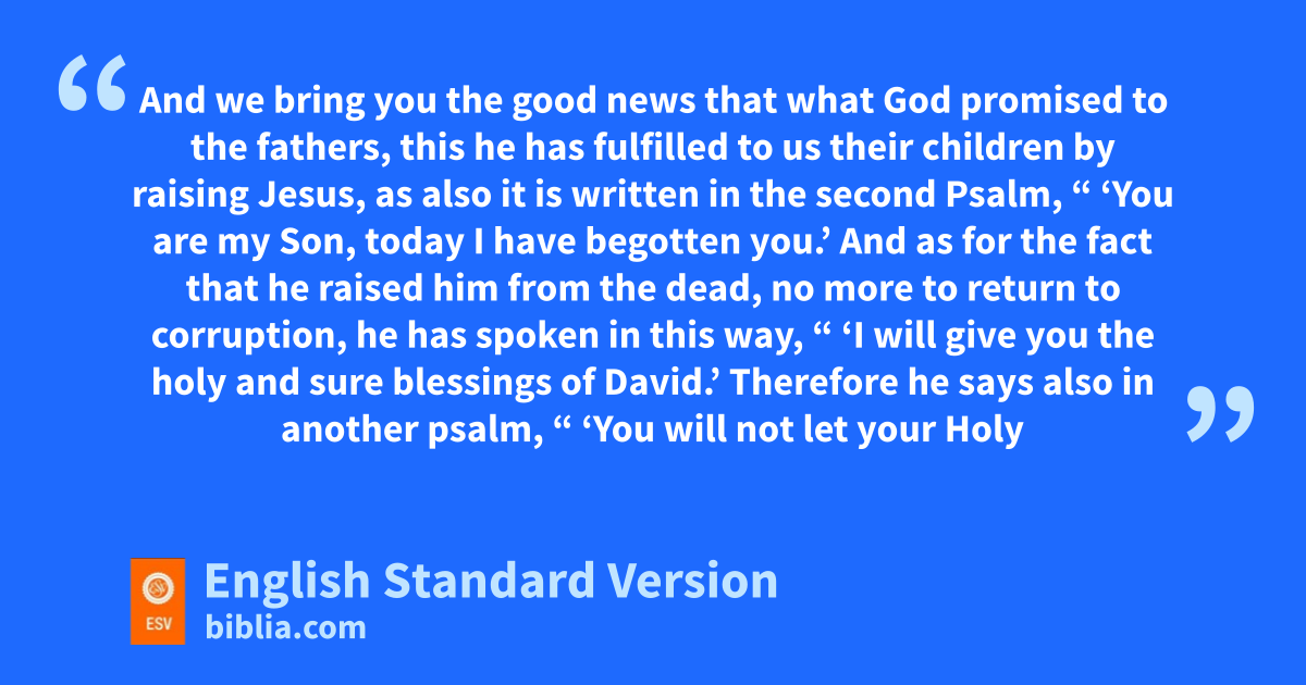 26 “Brothers, sons of the family of Abraham, and those among you vwho fear God, to us has been sent wthe message of xthis salvation. 27 For those who live in Jerusalem and their rulers, because ythey did not recognize him nor understand zthe utterances of the prophets, which are read every Sabbath, afulfilled them by condemning him. 28 And bthough they found in him no guilt worthy of death, cthey asked Pilate to have him executed. 29 And when dthey had carried out all that was written of him, ethey took him down from fthe tree and laid him in a tomb. 30 But gGod raised him from the dead, 31 and for many days hhe appeared to those iwho had come up with him jfrom Galilee to Jerusalem, kwho are now lhis witnesses to the people. 32 And we bring you the good news mthat what God promised to the fathers, 33 nthis he has fulfilled to us their children by raising Jesus, as also it is written in the second Psalm,