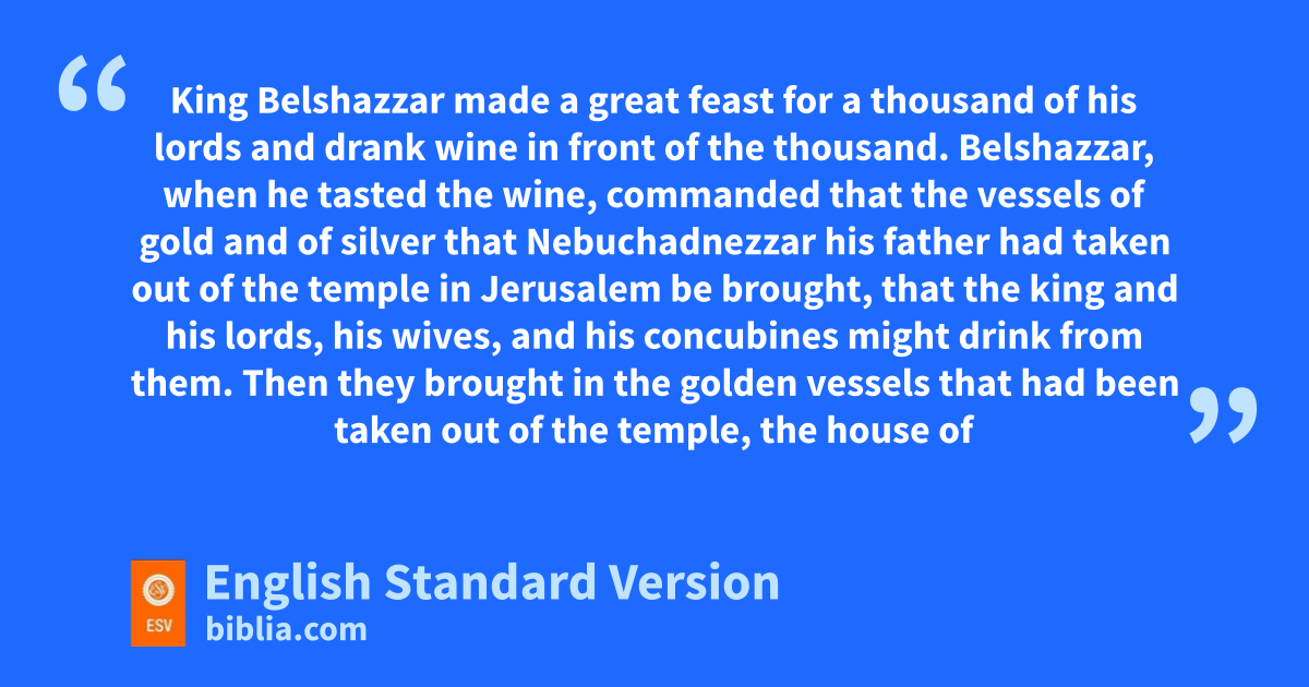 5 eKing Belshazzar fmade a great feast for a thousand of his glords and drank wine in front of the thousand.