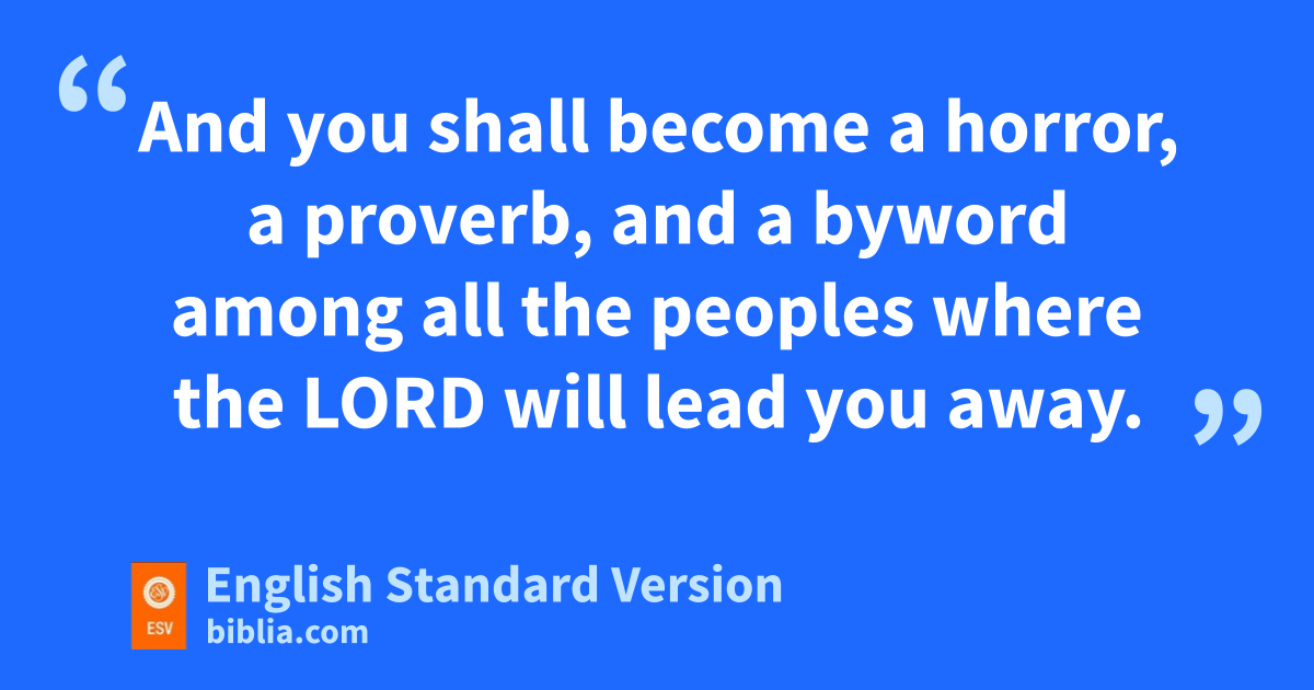 58 “If you are not careful to do all the words of this law that are written in this book, that you may fear this glorious and awesome name, lthe Lord your God, 59 then the Lord will bring on you and your offspring extraordinary afflictions, afflictions severe and lasting, and sicknesses grievous and lasting. 60 And he will bring upon you again all mthe diseases of Egypt, of which you were afraid, and they shall cling to you. 61 Every sickness also and every affliction that is not recorded in the book of this law, the Lord will bring upon you, until you are destroyed. 62 Whereas nyou were as numerous oas the stars of heaven, you shall be left few in number, because you did not obey the voice of the Lord your God. 63 And as the Lord ptook delight in doing you good and multiplying you, so the Lord will qtake delight in bringing ruin upon you and destroying you. And you shall be plucked off the land that you are entering to take possession of it.