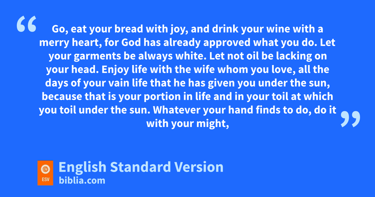 7 Go, keat your bread with joy, and drink your wine with a merry heart, for God has already approved what you do.