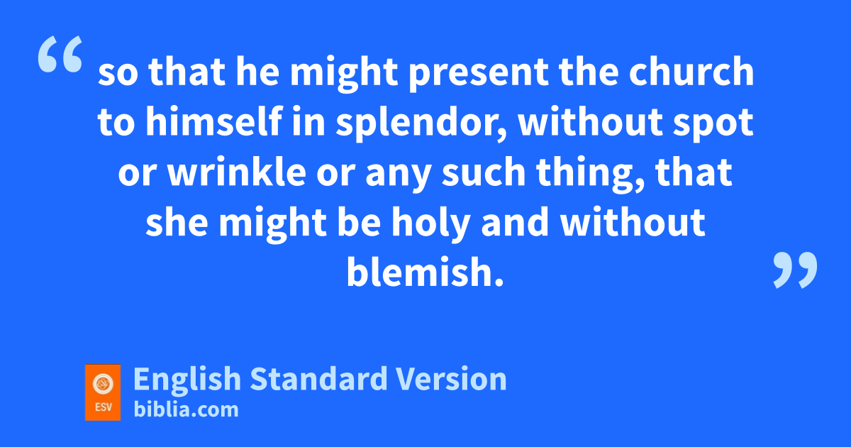 25 gHusbands, love your wives, as Christ loved the church and hgave himself up for her, 26 that he might sanctify her, having cleansed her by ithe washing of water jwith the word, 27 so kthat he might present the church to himself in splendor, lwithout spot or wrinkle or any such thing, that she might be holy and without blemish.1 28 In the same way mhusbands should love their wives as their own bodies. He who loves his wife loves himself. 29 For no one ever hated his own flesh, but nourishes and cherishes it, just as Christ does the church, 30 because nwe are members of his body. 31 o“Therefore a man shall leave his father and mother and hold fast to his wife, and pthe two shall become one flesh.” 32 This mystery is profound, and I am saying that it refers to Christ and the church. 33 However, qlet each one of you love his wife as himself, and let the wife see that she rrespects her husband.