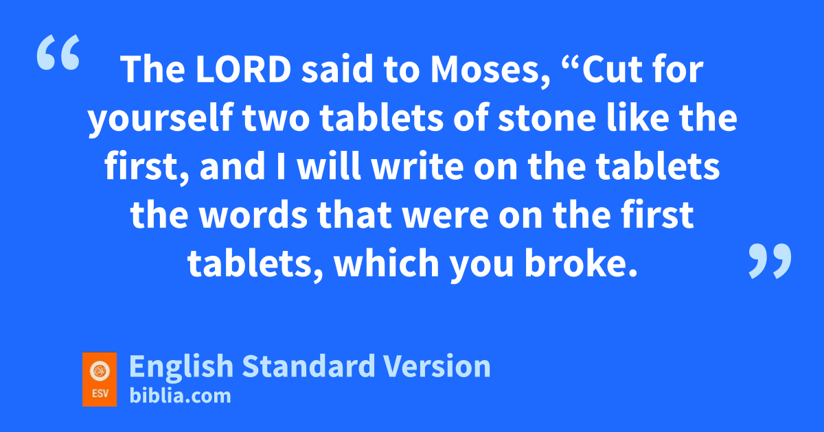 34 The Lord said to Moses, w“Cut for yourself two tablets of stone like the first, xand I will write on the tablets the words that were on the first tablets, ywhich you broke. 2 Be ready by the morning, and come up in the morning to Mount Sinai, and present yourself there to me zon the top of the mountain. 3 No aone shall come up with you, and let no one be seen throughout all the mountain. Let no flocks or herds graze opposite that mountain.” 4 So Moses cut two tablets of stone like the first. And he rose early in the morning and went up on Mount Sinai, as the Lord had commanded him, and took in his hand two tablets of stone. 5 The Lord bdescended in the cloud and stood with him there, and cproclaimed the name of the Lord. 6 The Lord passed before him and proclaimed, d“The Lord, the Lord, a God merciful and egracious, slow to anger, and abounding in steadfast flove and faithfulness, 7 gkeeping steadfast love for thousands,1 hforgiving iniquity and transgression and sin, but iwho will by no means clear the guilty, jvisiting the iniquity of the fathers on the children and the children’s children, to the third and the fourth generation.” 8 And Moses quickly kbowed his head toward the earth and worshiped. 9 And he said, “If now I have found favor in your sight, O Lord, please llet the Lord go in the midst of us, for mit is a stiff-necked people, and pardon our iniquity and our sin, and take us for nyour inheritance.”