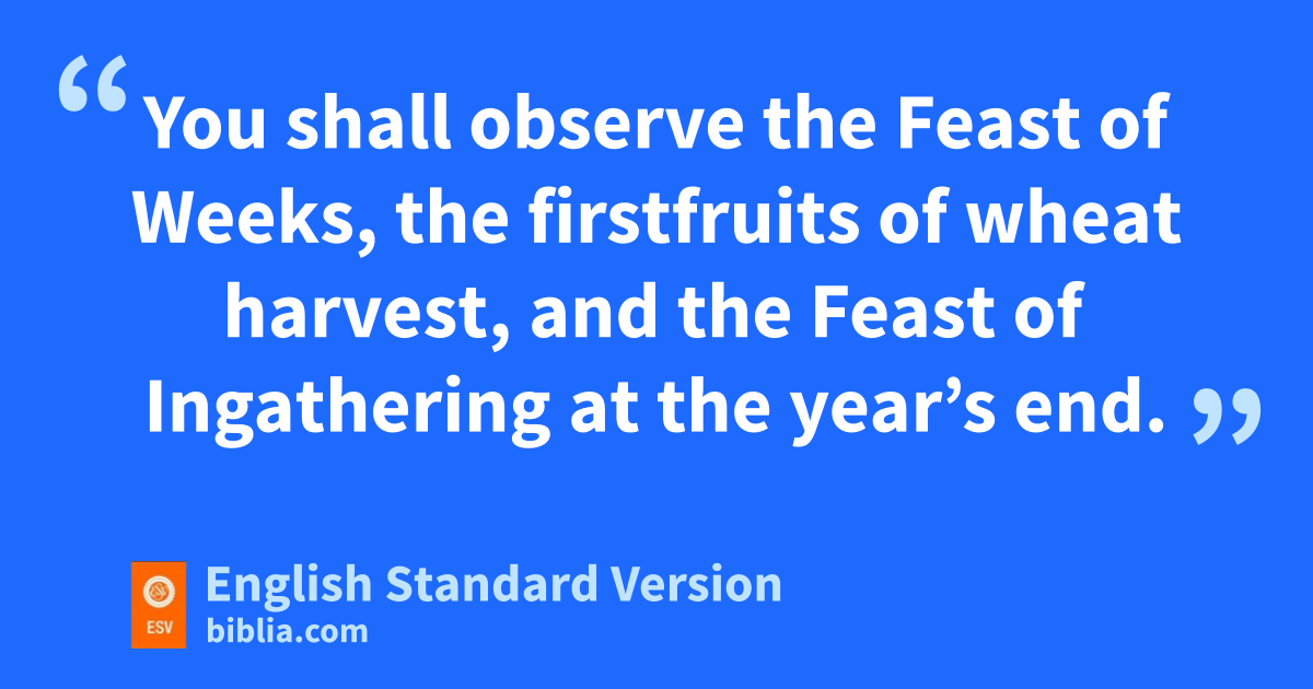 21 h“Six days you shall work, but on the seventh day you shall rest. In plowing time and in harvest you shall rest. 22 iYou shall observe the Feast of Weeks, the firstfruits of wheat harvest, and the Feast of Ingathering at the year’s end. 23 jThree times in the year shall all your males appear before the Lord God, the God of Israel. 24 For I will kcast out nations before you and lenlarge your borders; mno one shall covet your land, when you go up to appear before the Lord your God three times in the year.
