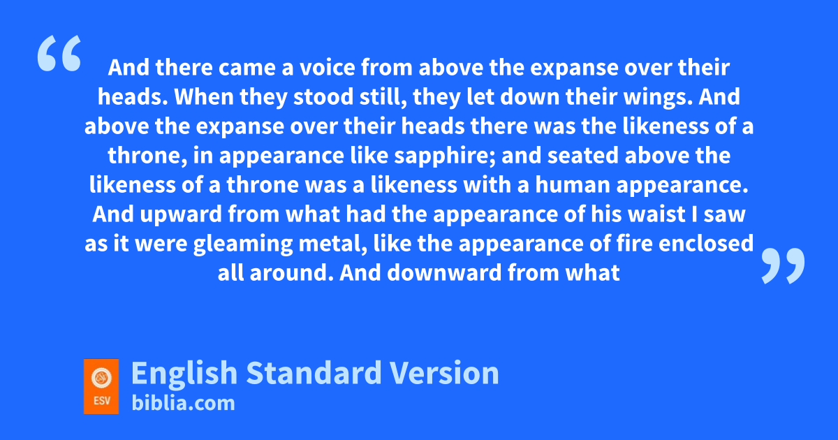 22 Over the heads of the living creatures there was kthe likeness of an expanse, shining like awe-inspiring lcrystal, spread out above their heads. 23 And under the expanse their wings were mstretched out straight, one toward another. nAnd each creature had two wings covering its body. 24 And when they went, I heard the sound of their wings olike the sound of many waters, like pthe sound of the qAlmighty, a sound of tumult rlike the sound of an army. When they stood still, they let down their wings. 25 And there came a voice from above sthe expanse over their heads. When they stood still, they let down their wings.