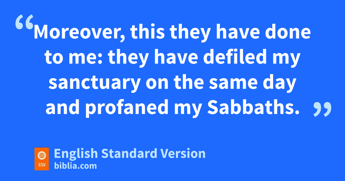 36 The Lord said to me: i“Son of man, jwill you judge Oholah and Oholibah? Declare to them their abominations. 37 For kthey have committed adultery, land blood is on their hands. With their idols they have committed adultery, and they have even moffered up5 to them for food the children whom they had borne to me. 38 Moreover, this they have done to me: nthey have defiled my sanctuary on the same day and oprofaned my Sabbaths. 39 For when pthey had slaughtered their children in sacrifice to their idols, on the same day qthey came into my sanctuary to profane it. And behold, rthis is what they did in my house. 40 They even sent for men to come from afar, sto whom a messenger was sent; and behold, they came. For them you bathed yourself, tpainted your eyes, uand adorned yourself with ornaments. 41 You sat on va stately couch, with a table spread before it won which you had placed my incense and xmy oil. 42 The ysound of a carefree multitude was with her; and with men of the common sort, drunkards6 were brought from the wilderness; and they put zbracelets on the hands of the women, and abeautiful crowns on their heads.