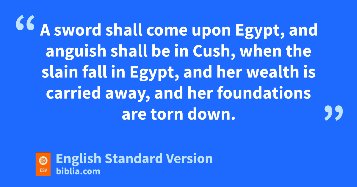 9 “On that day mmessengers shall go out from me in ships to terrify the unsuspecting bpeople of Cush, and aanguish shall come upon them on the day of Egypt’s doom;5 for, behold, it comes!