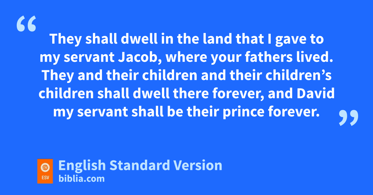 24 “My servant wDavid xshall be king over them, and they shall all have yone shepherd. zThey shall walk in my rules and be careful to obey my statutes. 25 aThey shall dwell in the land that I gave to my servant Jacob, where your fathers lived. They and their children and their children’s children shall dwell there bforever, and David my servant shall be their prince cforever. 26 dI will make a covenant of peace with them. It shall be ean everlasting covenant with them. And I will set them in their land7 and fmultiply them, and will gset my sanctuary in their midst forevermore. 27 hMy dwelling place shall be with them, vand I will be their God, and they shall be my people. 28 Then ithe nations will know that jI am the Lord who sanctifies Israel, when gmy sanctuary is in their midst forevermore.”