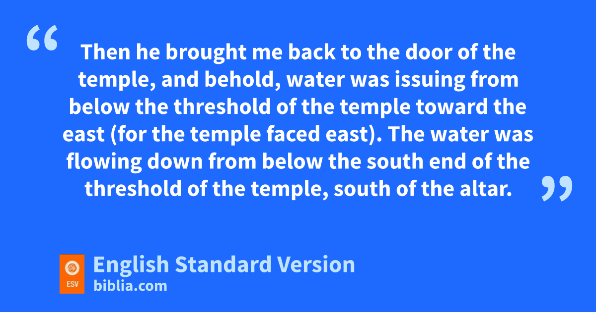 47 Then he brought me back to xthe door of the temple, and behold, ywater was issuing from below zthe threshold of the temple toward the east (for the temple faced east). The water was flowing down from below the south end of the threshold of the temple, south of athe altar. 2 Then he brought me out by way of bthe north gate and led me around on the outside to cthe outer gate that faces toward the east; and behold, the water was trickling out on the south side.