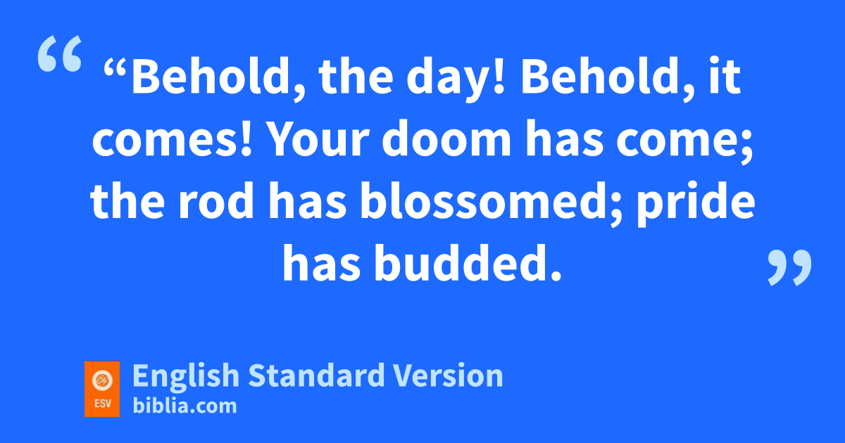 10 o“Behold, the day! Behold, it comes! pYour doom has come; qthe rod has blossomed; pride has budded. 11 rViolence has grown up into qa rod of wickedness. sNone of them shall remain, nor their abundance, nor their wealth; neither shall there be preeminence among them.4 12 jThe time has come; the day has arrived. Let not tthe buyer rejoice, nor tthe seller mourn, ufor wrath is upon all their multitude.5 13 For vthe seller shall not return to what he has sold, while they live. wFor the vision concerns all their multitude; it shall not turn back; and because of his iniquity, none can maintain his life.6