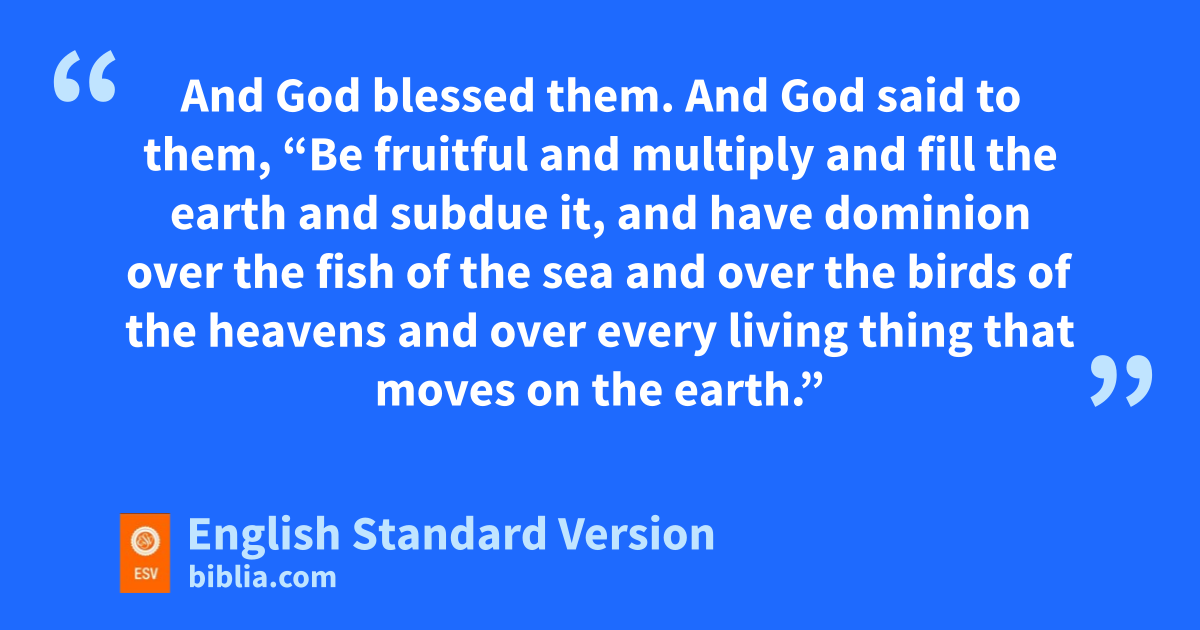 28 And God blessed them. And God said to them, s“Be fruitful and multiply and fill the earth and subdue it, and have dominion over the fish of the sea and over the birds of the heavens and over every living thing that moves on the earth.” 29 And God said, “Behold, I have given you every plant yielding seed that is on the face of all the earth, and every tree with seed in its fruit. tYou shall have them for food. 30 And uto every beast of the earth and to every bird of the heavens and to everything that creeps on the earth, everything that has the breath of life, I have given every green plant for food.” And it was so. 31 vAnd God saw everything that he had made, and behold, it was very good. And there was evening and there was morning, the sixth day.