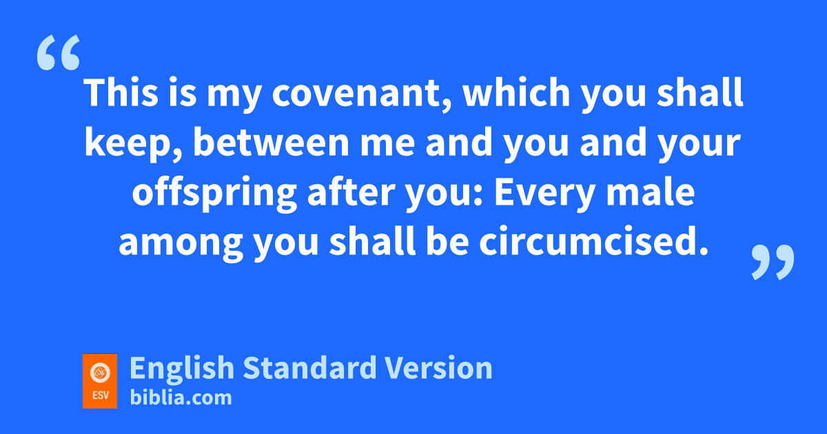9 And God said to Abraham, “As for you, you shall keep my covenant, you and your offspring after you throughout their generations. 10 This is my covenant, which you shall keep, between me and you and your offspring after you: Every male among you shall be circumcised. 11 You shall be circumcised in the flesh of your foreskins, and it shall be a zsign of the covenant between me and you. 12 He who is aeight days old among you shall be circumcised. Every male throughout your generations, whether born in your house or bbought with your money from any foreigner who is not of your offspring, 13 both he who is born in your house and he who is bought with your money, shall surely be circumcised. So shall my covenant be in your flesh an everlasting covenant. 14 Any uncircumcised male who is not circumcised in the flesh of his foreskin shall be cut off from his people; he has broken my covenant.”