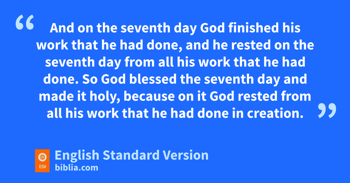 2 Thus the heavens and the earth were finished, and wall the host of them. 2 And xon the seventh day God finished his work that he had done, and he rested on the seventh day from all his work that he had done. 3 So God blessed the seventh day and made it holy, because on it God rested from all his work that he had done in creation.