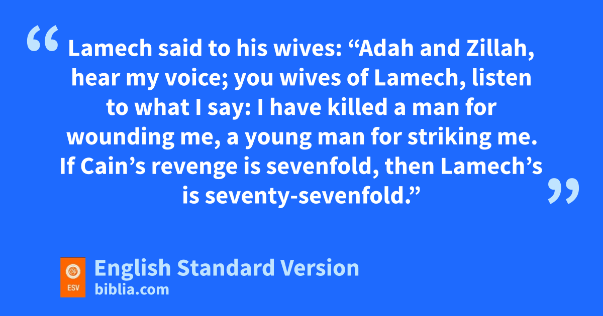 8 Cain spoke to Abel his brother.4 And when they were in the field, Cain rose up against his brother Abel and akilled him. 9 Then the Lord said to Cain, “Where is Abel your brother?” He said, b“I do not know; am I my brother’s keeper?” 10 And the Lord said, “What have you done? The voice of your brother’s blood cis crying to me from the ground. 11 And now dyou are cursed from the ground, which has opened its mouth to receive your brother’s blood from your hand. 12 When you work the ground, it shall no longer yield to you its strength. You shall be a fugitive and a wanderer on the earth.” 13 Cain said to the Lord, “My epunishment is greater than I can bear.5 14 Behold, fyou have driven me today away from the ground, and gfrom your face I shall be hidden. I shall be a fugitive and a wanderer on the earth, hand whoever finds me will kill me.” 15 Then the Lord said to him, “Not so! If anyone kills Cain, vengeance shall be taken on him isevenfold.” And the Lord jput a mark on Cain, lest any who found him should attack him. 16 Then Cain went away from the presence of the Lord and settled in the land of Nod,6 east of Eden.