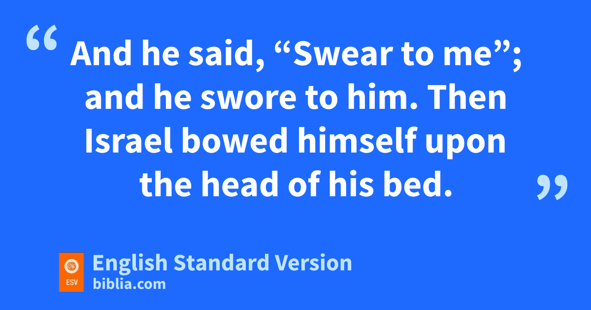 29 And swhen the time drew near that Israel must die, he called his son Joseph and said to him, “If now tI have found favor in your sight, uput your hand under my thigh and vpromise to deal kindly and truly with me. wDo not bury me in Egypt, 30 but let me lie with my fathers. Carry me out of Egypt and xbury me in their burying place.” He answered, “I will do as you have said.” 31 And he said, “Swear to me”; and he swore to him. Then yIsrael bowed himself upon the head of his bed.2