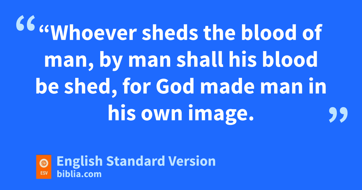 9 And God blessed Noah and his sons and said to them, q“Be fruitful and multiply and fill the earth. 2 rThe fear of you and the dread of you shall be upon every beast of the earth and upon every bird of the heavens, upon everything that creeps on the ground and all the fish of the sea. Into your hand they are delivered. 3 sEvery moving thing that lives shall be food for you. And tas I gave you the green plants, I give you everything. 4 But you shall not eat flesh with its ulife, that is, its blood. 5 And for your lifeblood I will require a reckoning: vfrom every beast I will require it and wfrom man. From his fellow man I will require a reckoning for the life of man.