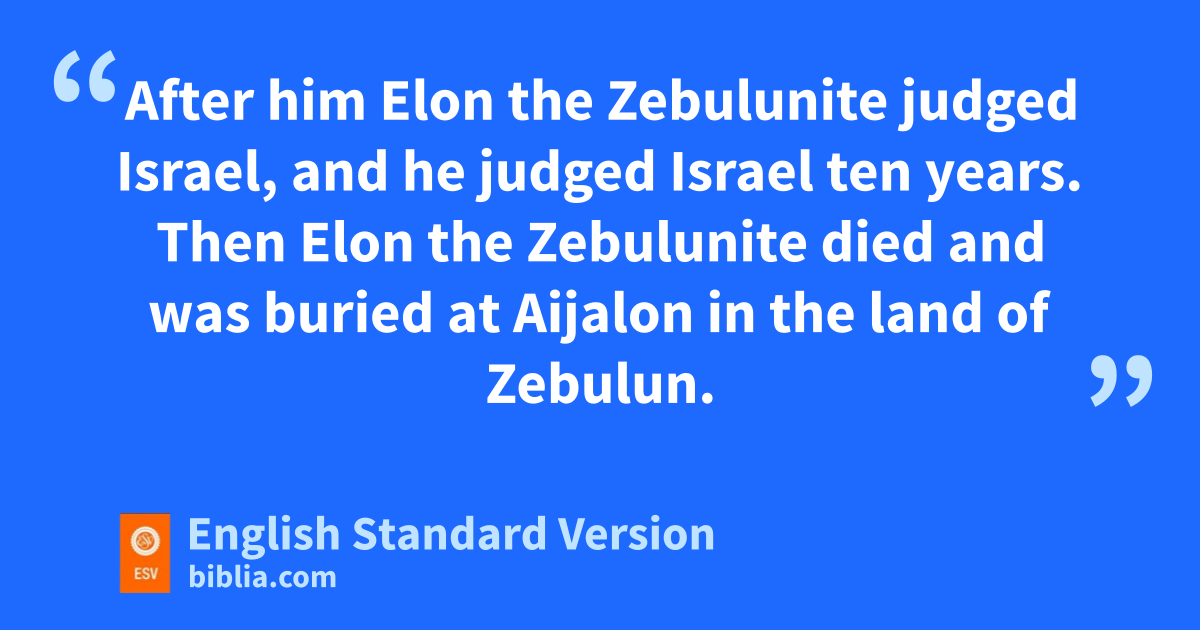 11 After him Elon the Zebulunite judged Israel, and he judged Israel ten years. 12 Then Elon the Zebulunite died and was buried at Aijalon in the land of Zebulun.