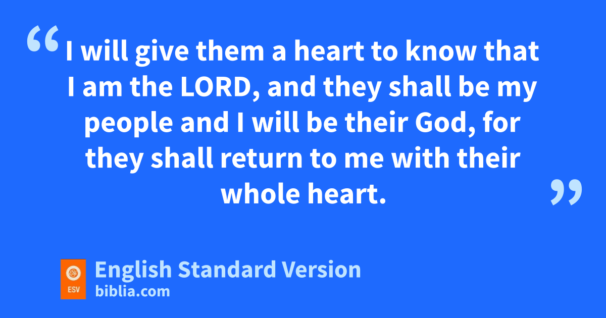 4 Then the word of the Lord came to me: 5 “Thus says the Lord, the God of Israel: Like these good figs, so I will regard as good the exiles from Judah, pwhom I have sent away from this place to the land of the Chaldeans. 6 qI will set my eyes on them for good, and I will bring them back to this land. rI will build them up, and not tear them down; sI will plant them, and not pluck them up. 7 tI will give them a heart to know that I am the Lord, uand they shall be my people uand I will be their God, vfor they shall return to me with their whole heart.