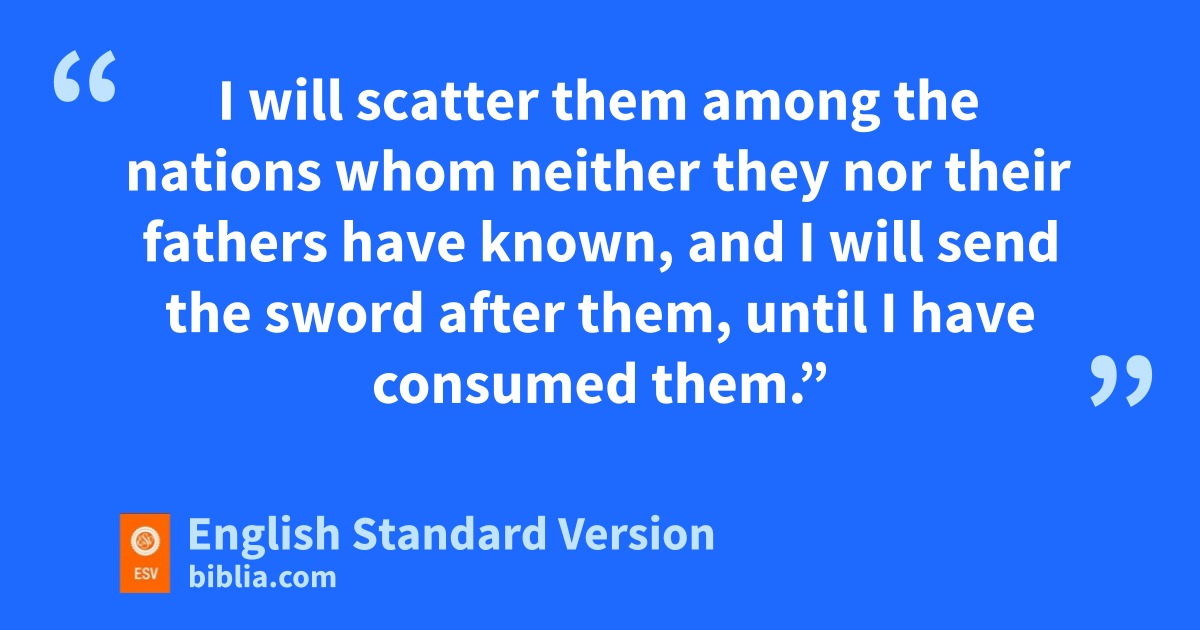 12 iWho is the man so wise that he can understand this? To whom has the mouth of the Lord spoken, that he may declare it? Why is the land ruined jand laid waste like a wilderness, so that no one passes through? 13 And the Lord says: k“Because they have forsaken my law that I set before them, and have not obeyed my voice or walked in accord with it, 14 but lhave stubbornly followed their own hearts and have gone after the Baals, as their fathers taught them. 15 Therefore thus says the Lord of hosts, the God of Israel: mBehold, I will feed this people with bitter food, and give them npoisonous water to drink. 16 oI will scatter them among the nations pwhom neither they nor their fathers have known, and I will qsend the sword after them, until I have consumed them.”