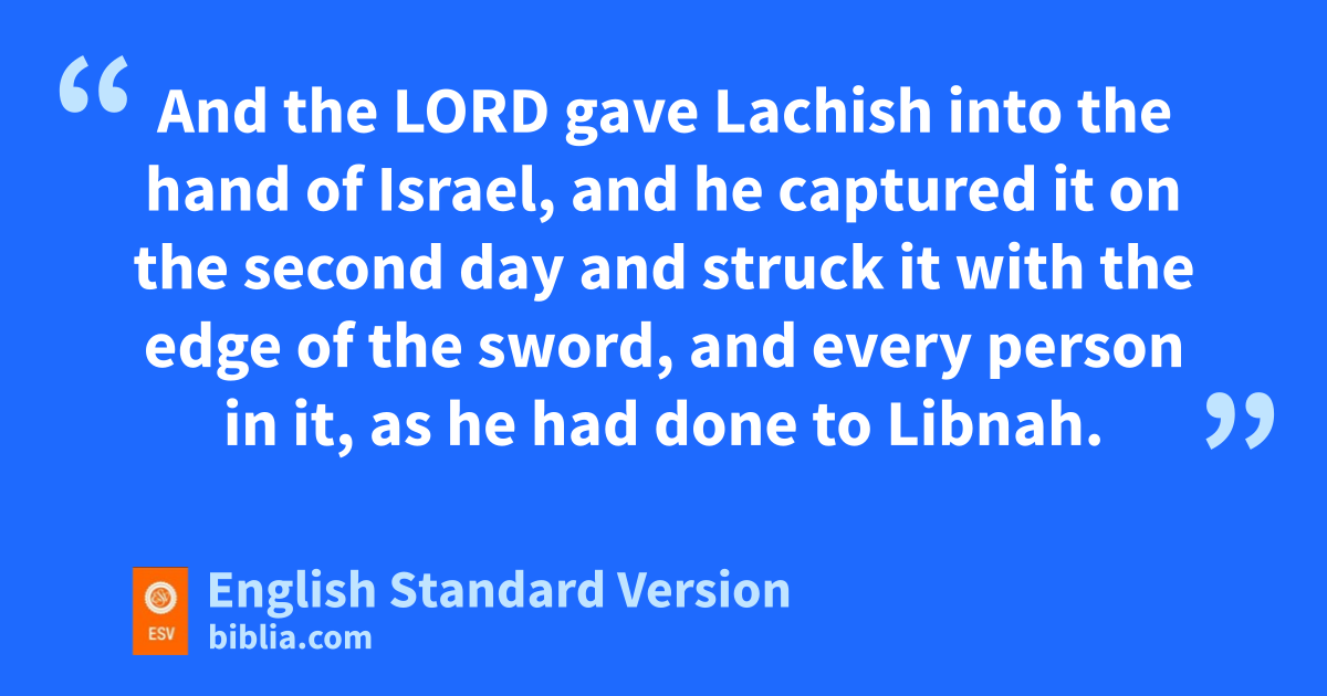 31 Then Joshua and all Israel with him passed on from Libnah to oLachish and laid siege to it and fought against it. 32 And the Lord gave Lachish into the hand of Israel, and he captured it on the second day and struck it with the edge of the sword, and every person in it, as he had done to Libnah.