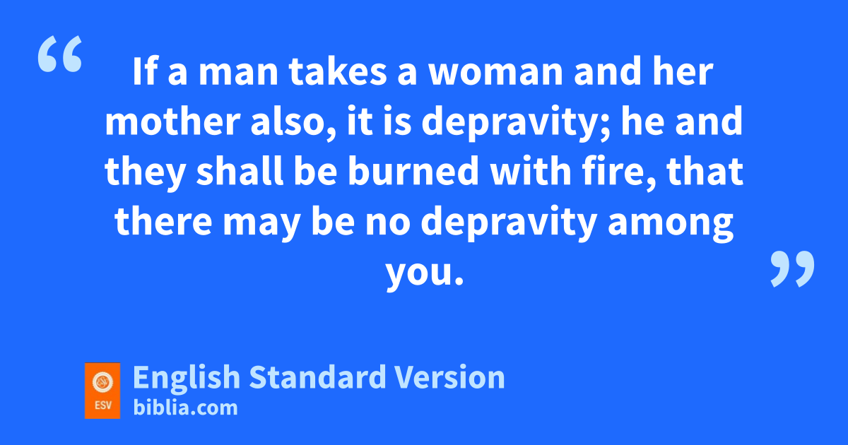 10 “If a bman commits adultery with the wife of1 his neighbor, both the adulterer and the adulteress shall surely be put to death. 11 cIf a man lies with his father’s wife, he has uncovered his father’s nakedness; both of them shall surely be put to death; their blood is upon them. 12 dIf a man lies with his daughter-in-law, both of them shall surely be put to death; they have committed eperversion; their blood is upon them. 13 fIf a man lies with a male as with a woman, both of them have committed an abomination; they shall surely be put to death; their blood is upon them. 14 gIf a man takes a woman and her mother also, it is depravity; he and they shall be burned with fire, that there may be no depravity among you. 15 hIf a man lies with an animal, he shall surely be put to death, and you shall kill the animal. 16 hIf a woman approaches any animal and lies with it, you shall kill the woman and the animal; they shall surely be put to death; their blood is upon them.