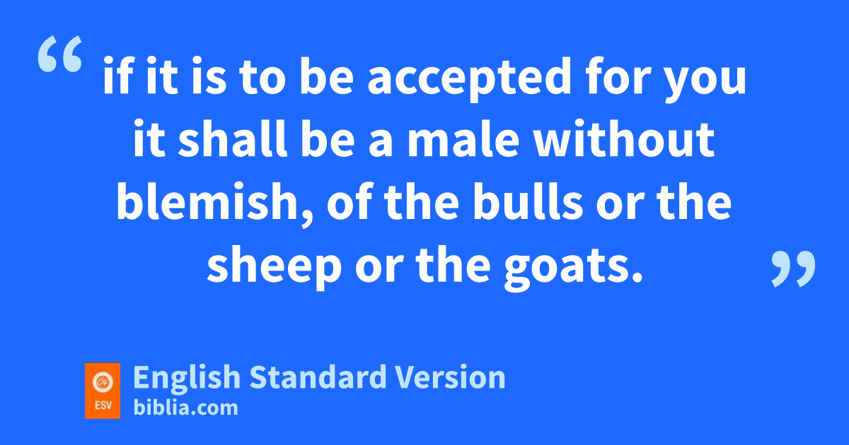 17 And the Lord spoke to Moses, saying, 18 “Speak to Aaron and his sons and all the people of Israel and say to them, vWhen any one of the house of Israel or of the sojourners in Israel presents a burnt offering as his offering, for any of their vows or freewill offerings that they offer to the Lord, 19 if it is to be accepted for you it shall be a wmale without blemish, of the bulls or the sheep or the goats. 20 xYou shall not offer anything that has a blemish, for it will not be acceptable for you. 21 And when anyone yoffers a sacrifice of peace offerings to the Lord zto fulfill a vow or as a freewill offering from the herd or from the flock, to be accepted it must be perfect; there shall be no blemish in it. 22 Animals ablind or disabled or mutilated or having a discharge or ban itch or scabs you shall not offer to the Lord or give them to the Lord as a food coffering on the altar. 23 You may present a bull or a lamb that has a part dtoo long or too short for a freewill offering, but for a vow offering it cannot be accepted. 24 Any animal that has its testicles bruised or crushed or torn or cut you shall not offer to the Lord; you shall not do it within your land, 25 neither shall you offer as ethe bread of your God any such animals gotten from a foreigner. Since there is a fblemish in them, because of their mutilation, they will not be accepted for you.”