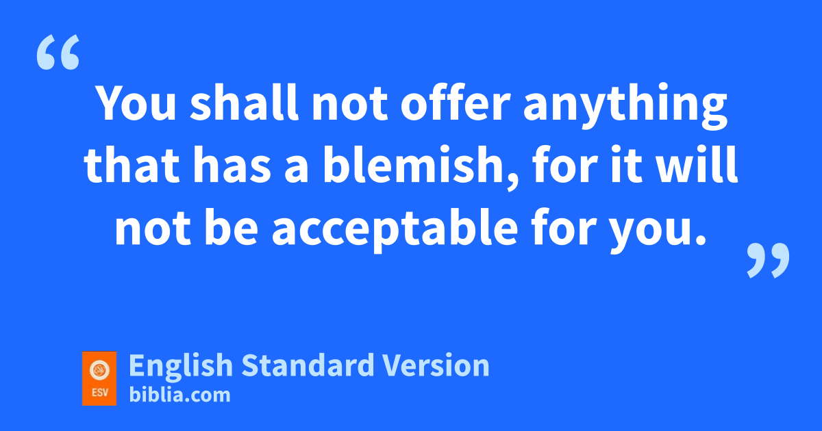 17 And the Lord spoke to Moses, saying, 18 “Speak to Aaron and his sons and all the people of Israel and say to them, vWhen any one of the house of Israel or of the sojourners in Israel presents a burnt offering as his offering, for any of their vows or freewill offerings that they offer to the Lord, 19 if it is to be accepted for you it shall be a wmale without blemish, of the bulls or the sheep or the goats. 20 xYou shall not offer anything that has a blemish, for it will not be acceptable for you. 21 And when anyone yoffers a sacrifice of peace offerings to the Lord zto fulfill a vow or as a freewill offering from the herd or from the flock, to be accepted it must be perfect; there shall be no blemish in it. 22 Animals ablind or disabled or mutilated or having a discharge or ban itch or scabs you shall not offer to the Lord or give them to the Lord as a food coffering on the altar. 23 You may present a bull or a lamb that has a part dtoo long or too short for a freewill offering, but for a vow offering it cannot be accepted. 24 Any animal that has its testicles bruised or crushed or torn or cut you shall not offer to the Lord; you shall not do it within your land, 25 neither shall you offer as ethe bread of your God any such animals gotten from a foreigner. Since there is a fblemish in them, because of their mutilation, they will not be accepted for you.”
