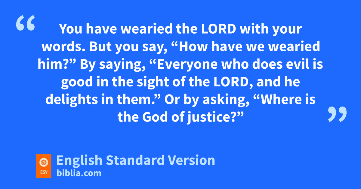 17 dYou have wearied the Lord with your words. xBut you say, “How have we wearied him?” eBy saying, “Everyone who does evil is good in the sight of the Lord, and he delights in them.” Or by asking, f“Where is the God of justice?”