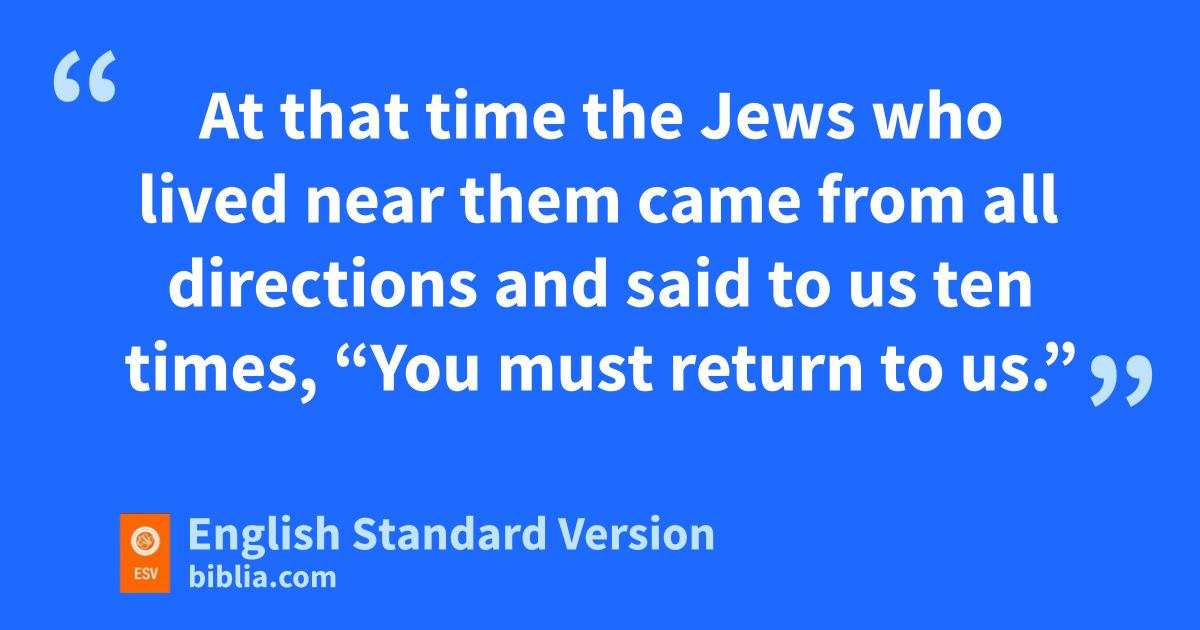 10 In Judah it was said,4 “The strength of those who bear the burdens is failing. There is too much rubble. By ourselves we will not be able to rebuild the wall.” 11 And our enemies said, “They will not know or see till we come among them and kill them and stop the work.” 12 At that time the Jews who lived near them came from all directions and said to us ten times, “You must return to us.”5 13 So in the lowest parts of the space behind the wall, in open places, I stationed the people by their clans, with their swords, their spears, and their bows. 14 And I looked and arose and said to the nobles and to the officials and to the rest of the people, x“Do not be afraid of them. Remember the Lord, ywho is great and awesome, zand fight for your brothers, your sons, your daughters, your wives, and your homes.”