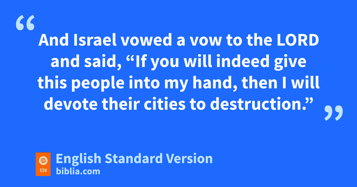21 When wthe Canaanite, the king of Arad, who lived in xthe Negeb, heard that Israel was coming by the way of Atharim, he fought against Israel, and took some of them captive. 2 yAnd Israel vowed a vow to the Lord and said, “If you will indeed give this people into my hand, then I will devote their cities to destruction.”1 3 And the Lord heeded the voice of Israel and gave over the Canaanites, and they devoted them and their cities to destruction. So the name of the place was called zHormah.2