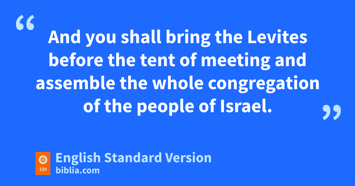 5 And the Lord spoke to Moses, saying, 6 “Take the Levites from among the people of Israel and cleanse them. 7 Thus you shall do to them to cleanse them: sprinkle the jwater of purification upon them, and klet them go with a razor over all their body, and wash their clothes and cleanse themselves. 8 Then let them take a bull from the herd and lits grain offering of fine flour mixed with oil, mand you shall take another bull from the herd for a sin offering. 9 nAnd you shall bring the Levites before the tent of meeting oand assemble the whole congregation of the people of Israel. 10 When you bring the Levites before the Lord, the people of Israel pshall lay their hands on the Levites, 11 and Aaron shall offer the Levites before the Lord as a wave offering from the people of Israel, that they may do the service of the Lord. 12 Then the Levites qshall lay their hands on the heads of the bulls, and you shall offer rthe one for a sin offering and the other for a burnt offering to the Lord to make atonement for the Levites. 13 And you shall set the Levites before Aaron and his sons, and shall offer them as sa wave offering to the Lord.