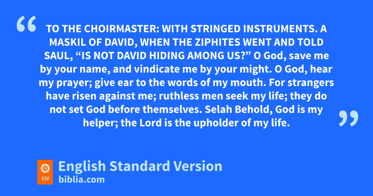 54 To the choirmaster: with tstringed instruments. A Maskil1 of David, uwhen the Ziphites went and told Saul, “Is not David hiding among us?”