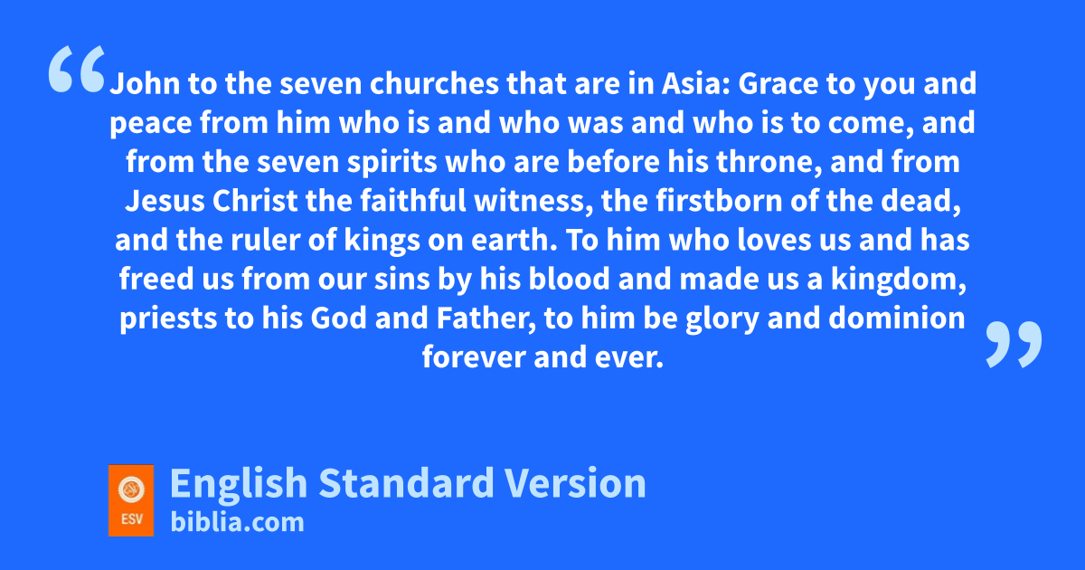 Grace to you and peace from ihim jwho is and kwho was and who is to come, and from lthe seven spirits who are before his throne, 5 and from Jesus Christ mthe faithful witness, nthe firstborn of the dead, and othe ruler of kings on earth.