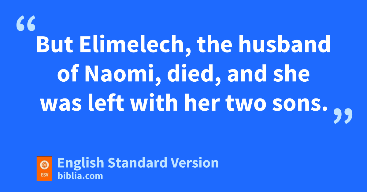 1 In the days awhen the judges ruled there was ba famine in the land, and a man of cBethlehem in Judah went to sojourn in the country of Moab, he and his wife and his two sons. 2 The name of the man was Elimelech and the name of his wife Naomi, and the names of his two sons were Mahlon and Chilion. They were dEphrathites from Bethlehem in Judah. They went into the country of Moab and remained there. 3 But Elimelech, the husband of Naomi, died, and she was left with her two sons. 4 These took Moabite wives; the name of the one was Orpah and the name of the other Ruth. They lived there about ten years, 5 and both Mahlon and Chilion died, so that the woman was left without her two sons and her husband.